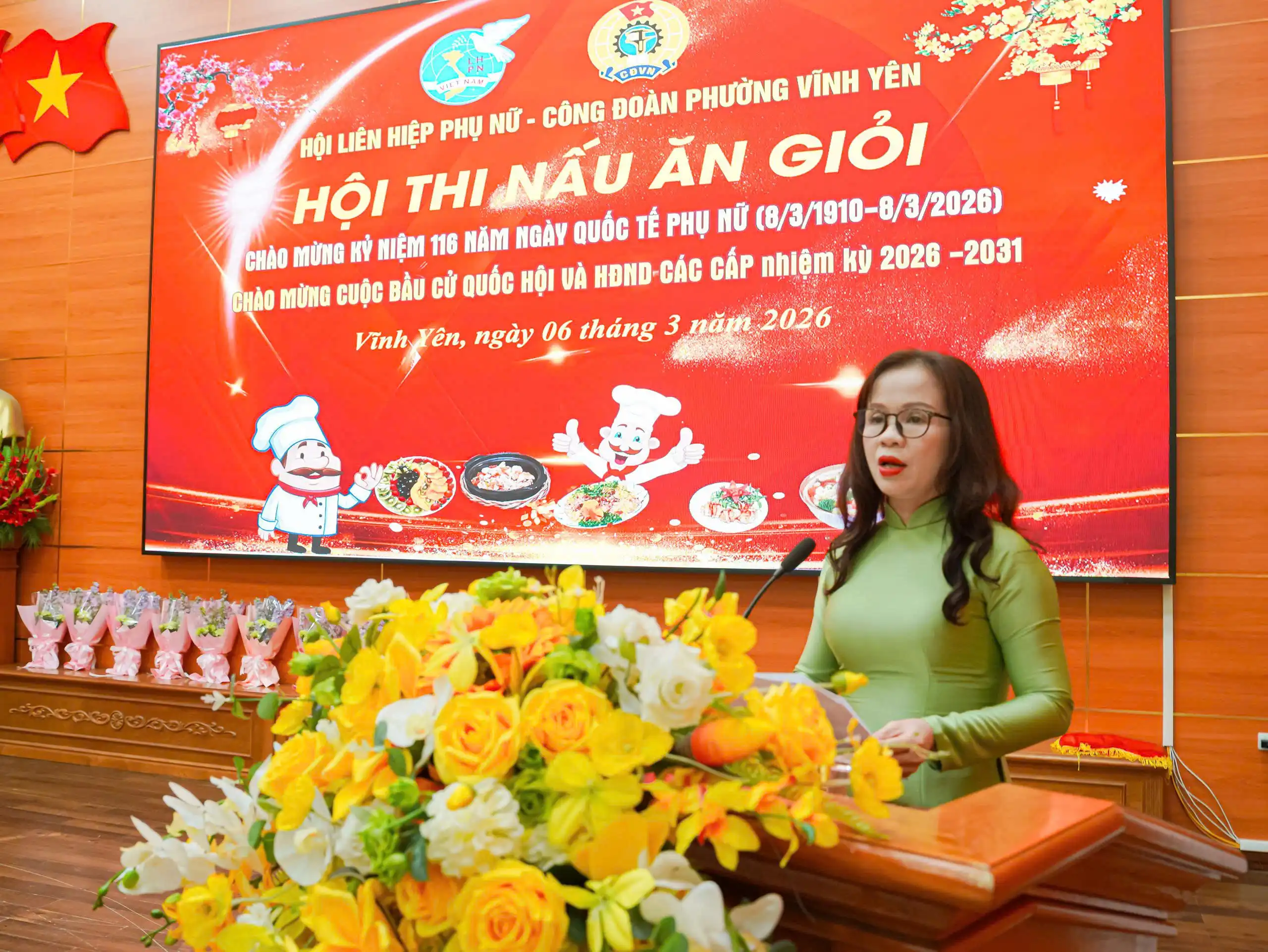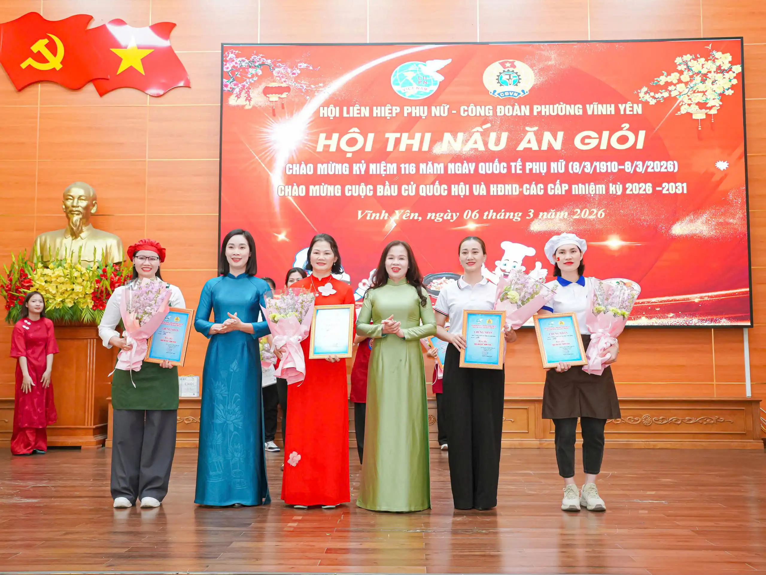 Hòa trong không khí thi đua sôi nổi chào mừng 116 năm Ngày Quốc tế Phụ nữ (8/3/1910 – 8/3/2026) và hướng tới sự kiện chính trị quan trọng của địa phương – cuộc bầu cử Quốc hội và Hội đồng nhân dân các cấp nhiệm kỳ 2026–2031, Công đoàn phường Vĩnh Yên đã tổ chức Hội thi “Nấu ăn giỏi” dành cho cán bộ, hội viên phụ nữ và đoàn viên công đoàn trên địa bàn.