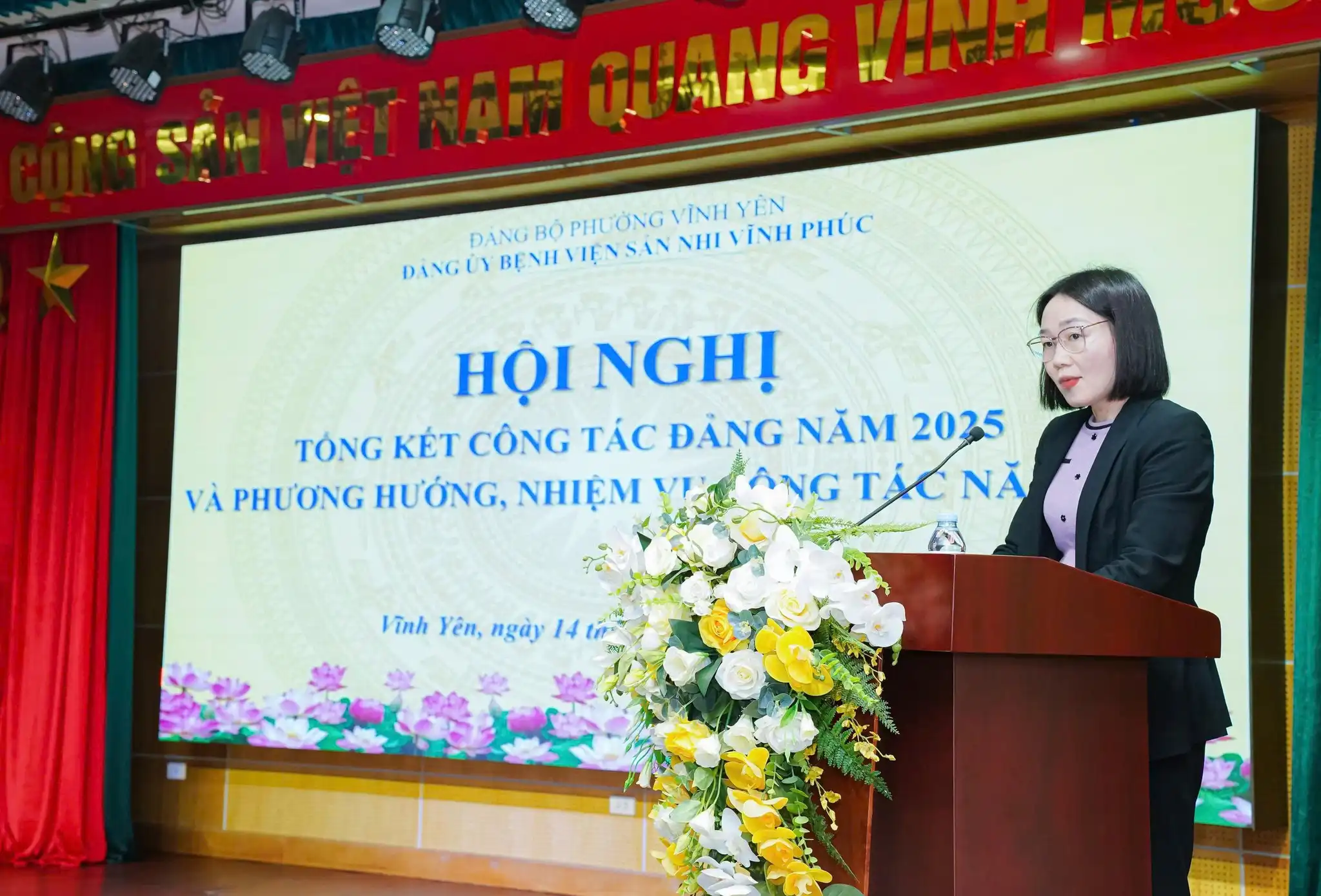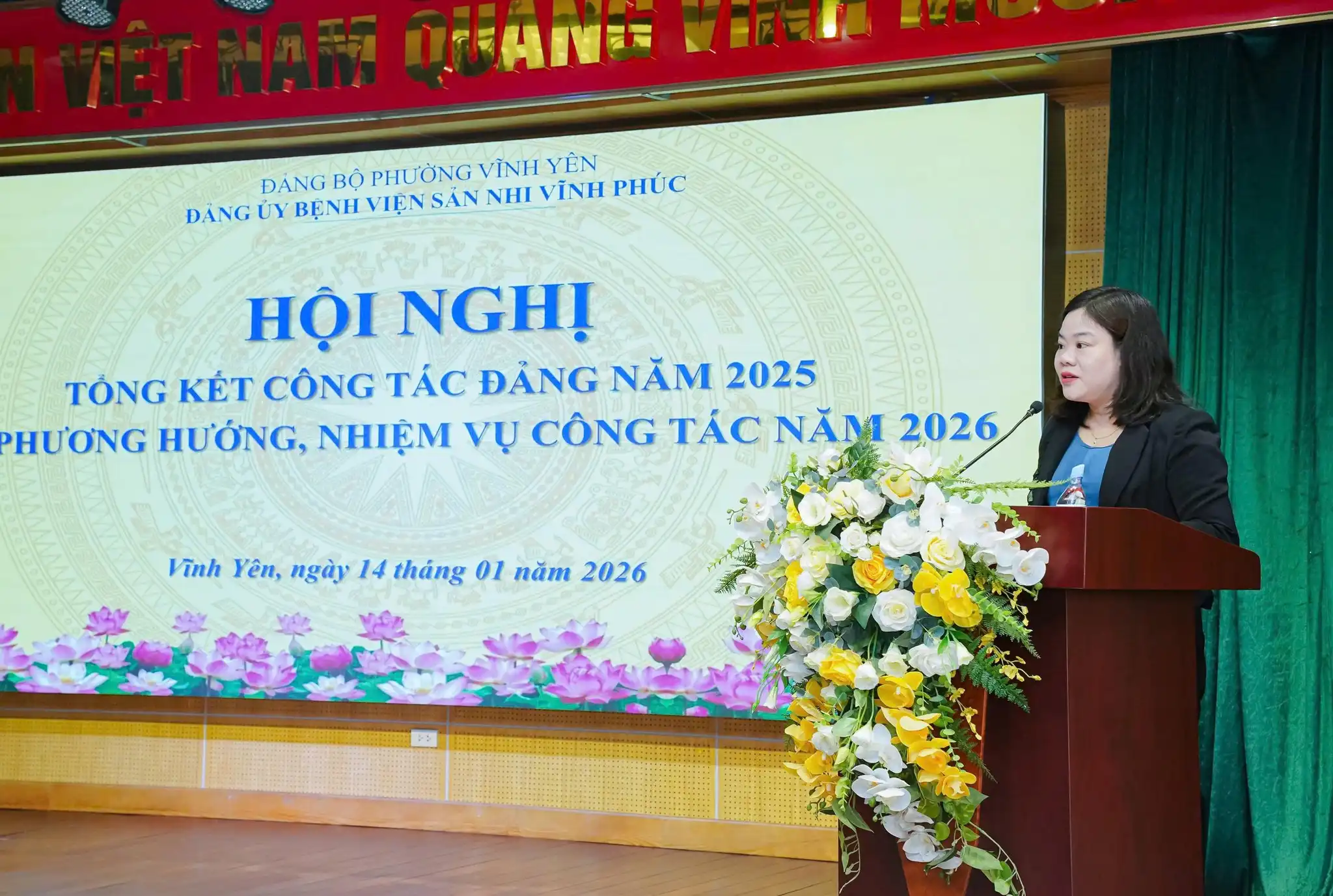 Chiều ngày 14/01/2026, tại Hội trường Bệnh viện Sản Nhi Vĩnh Phúc, Đảng bộ Bệnh viện đã long trọng tổ chức Hội nghị tổng kết công tác Đảng năm 2025 và triển khai phương hướng, nhiệm vụ năm 2026. Đây là sự kiện chính trị quan trọng nhằm đánh giá toàn diện kết quả lãnh đạo, chỉ đạo của Đảng bộ trong năm 2025; đồng thời xác định mục tiêu, nhiệm vụ trọng tâm, giải pháp chủ yếu cho năm 2026, góp phần nâng cao năng lực lãnh đạo của tổ chức Đảng, đáp ứng yêu cầu phát triển của đơn vị trong giai đoạn mới.